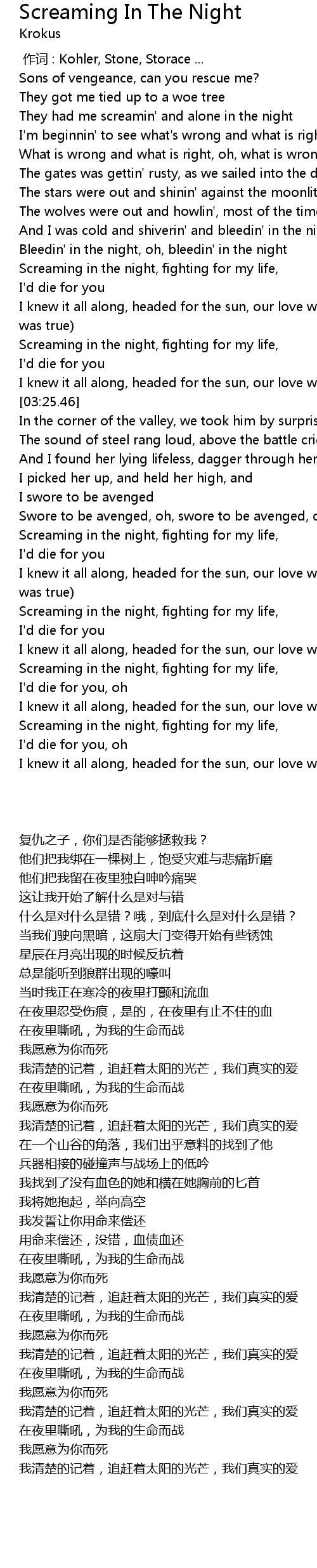 | [02:59.11] | Screaming in the night, fighting for my life, |