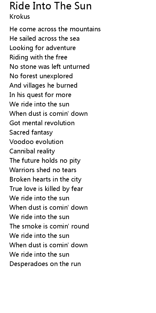 | We ride into the sun | |