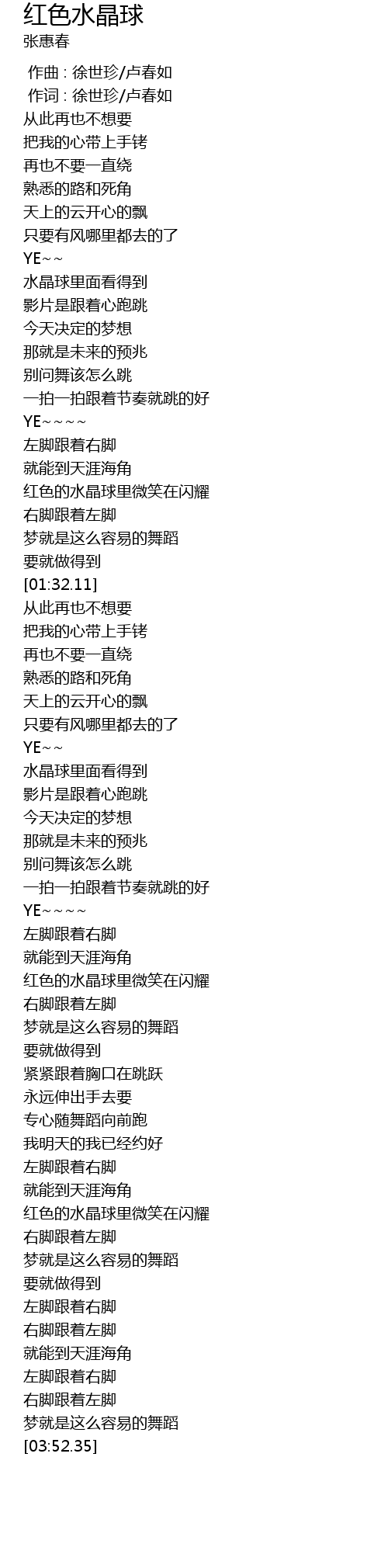 | Song | 红色水晶球 |