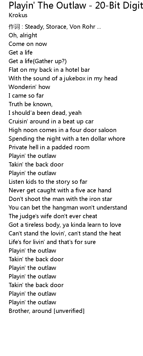 | Song | Playin' The Outlaw - 20-Bit Digital Mastering From The Original Master Tapes: 2000 |