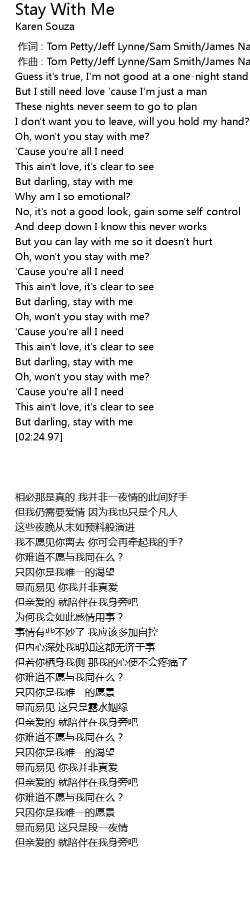 | [00:34.13] | Oh, won't you stay with me? |