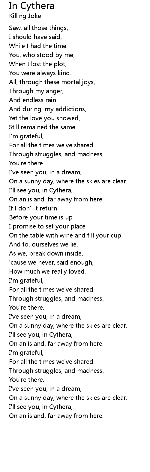 | Song | In Cythera |
