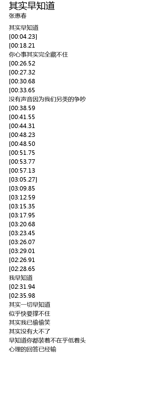 | [03:43.08][03:20.68][02:15.32][01:10.30] | zao zhi dao ni dou yi zhi zhuang zhe bu zai hu |