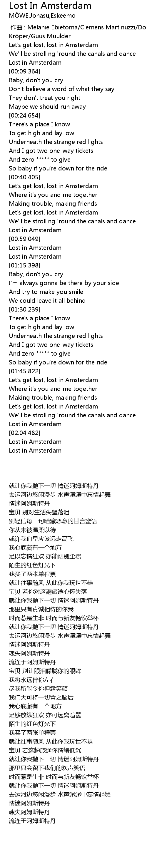 | [01:54.902] | Let's get lost, lost in Amsterdam |
