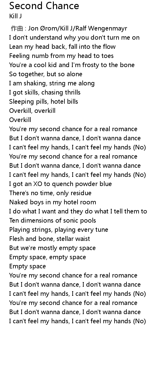 | [01:28.748] | You're my second chance for a real romance |