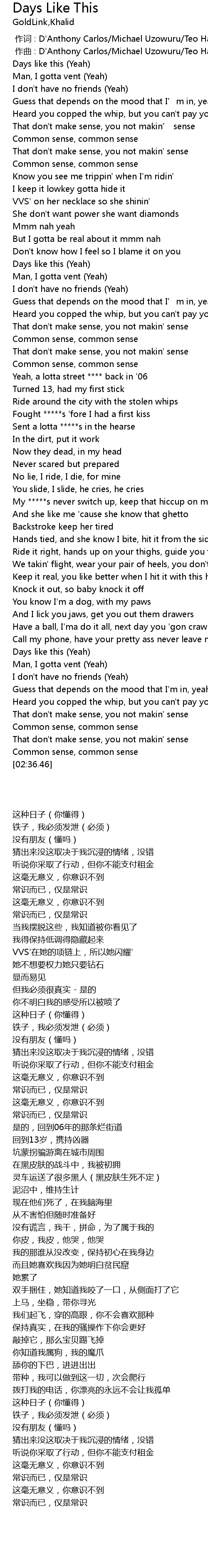 | [02:12.04] | Days like this (Yeah) |