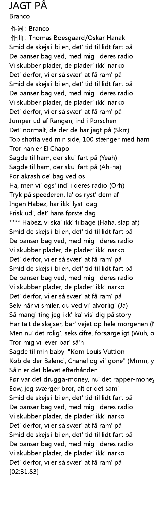 | [00:50.18] | Sagde til ham, der sku' fart på (Yeah) |