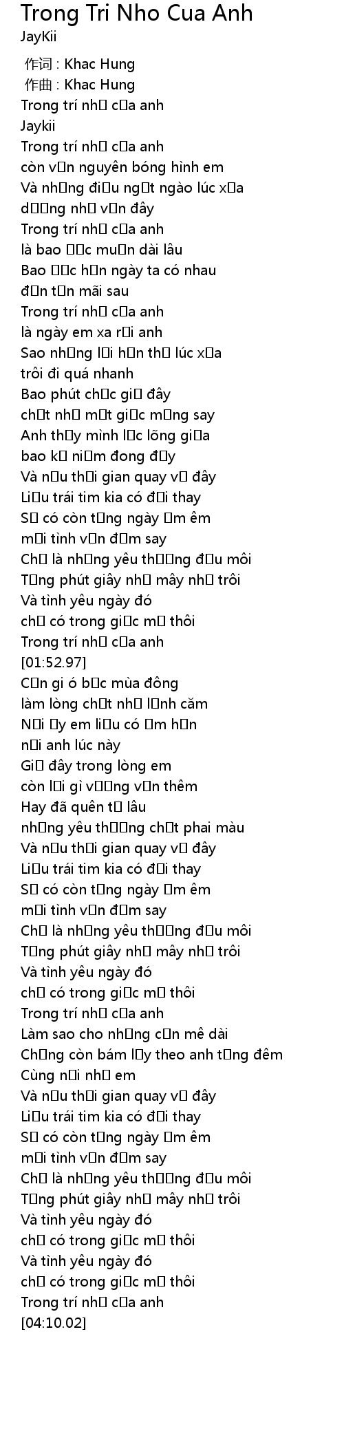 | [00:01.000] | zuò qǔ : Khac Hung |