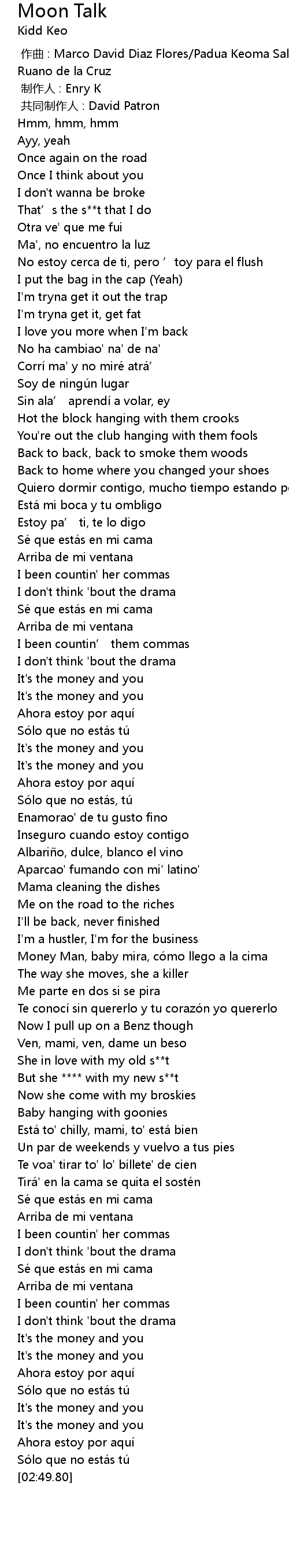 | [01:47.47] | Money Man, baby mira, cómo llego a la cima |