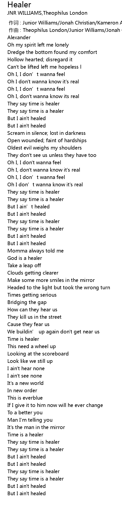 | [00:53.405] | But I ain' t healed |