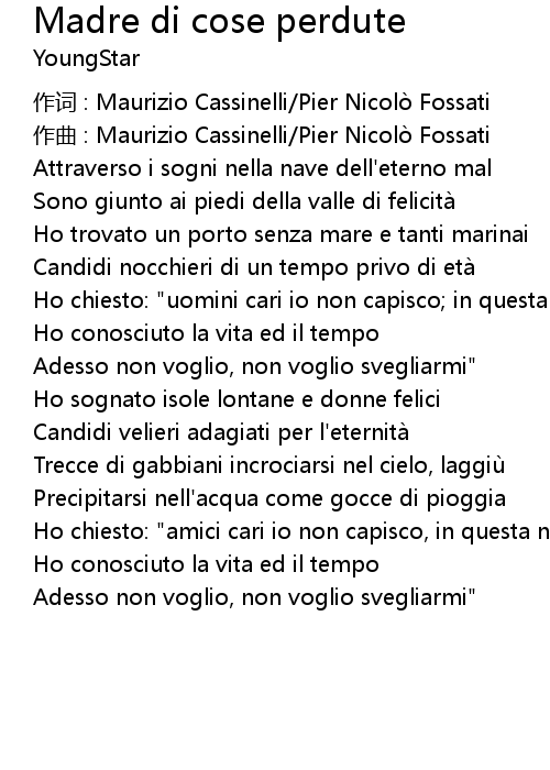 | 作词 : Maurizio Cassinelli/Pier Nicolò Fossati | |