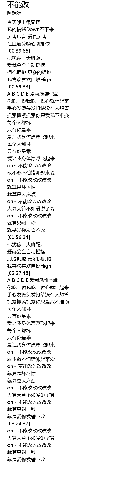 | [03:40.87] | oh bù néng gǎi gǎi gǎi gǎi gǎi |