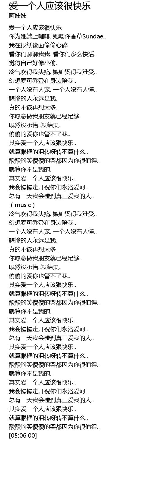 | [00:00.00] | ai yi ge ren ying gai hen kuai le |