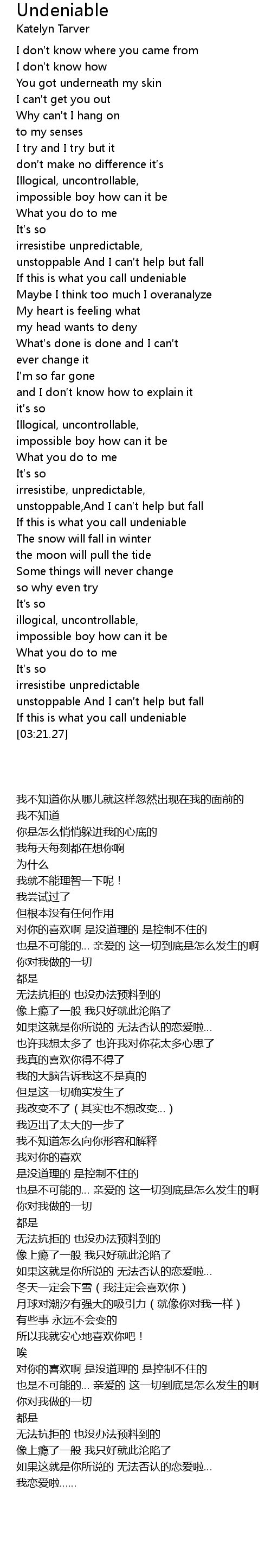 | [03:03.54] | If this is what you call undeniable |