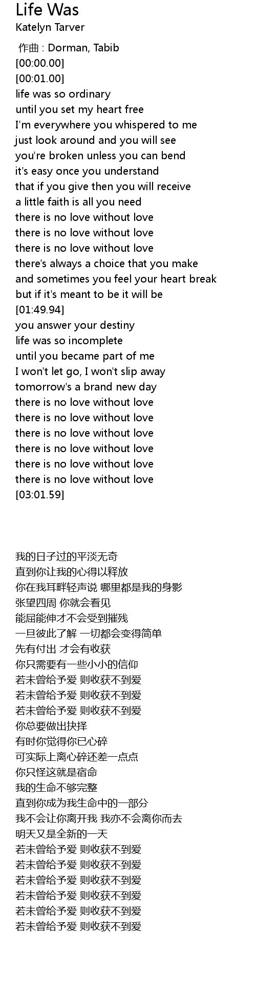 | [02:53.28] | there is no love without love |