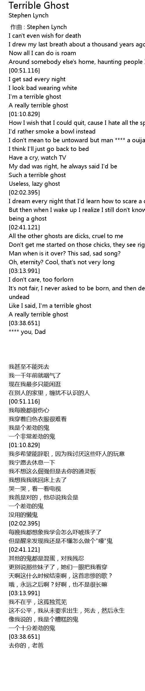 | [03:29.083] | Like I said, I' m a terrible ghost |