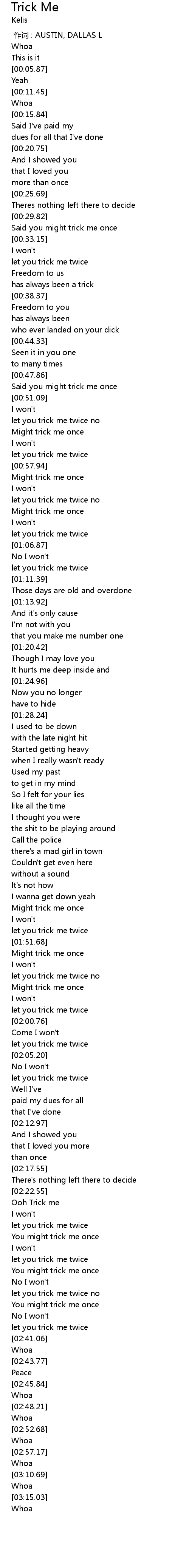 | [02:23.61] | Ooh Trick me |