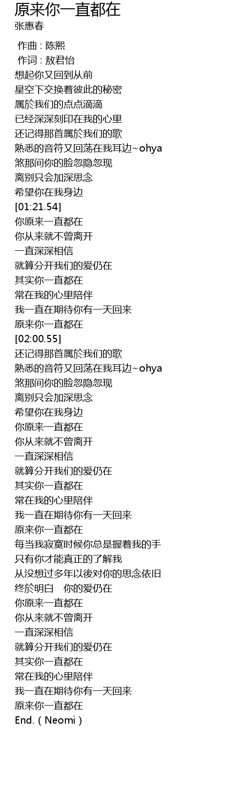 | [01:37.35] | qí shí nǐ yī zhí dōu zài |