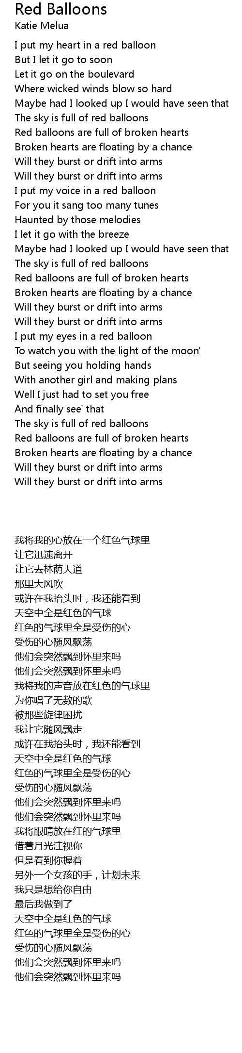 Red balloons are full of broken hearts |