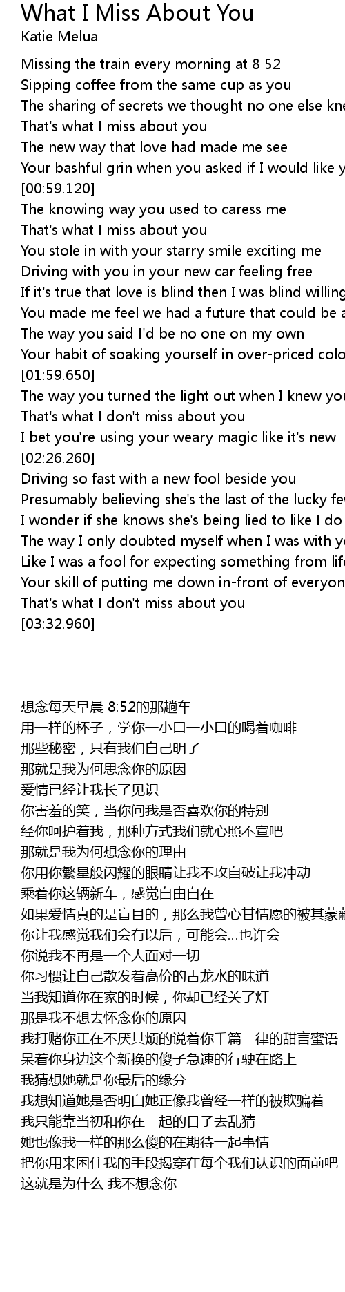 | [00:13.560] | Missing the train every morning at 8 52 |