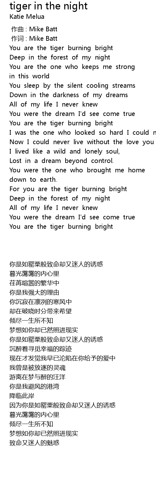 | Song | tiger in the night |