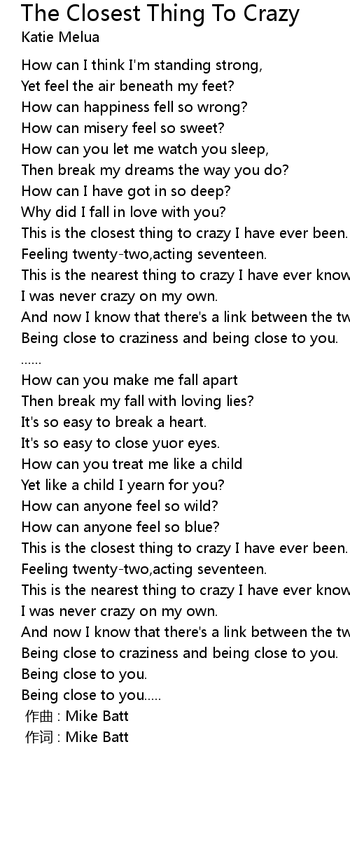 | [01:24] | This is the nearest thing to crazy I have ever known. |