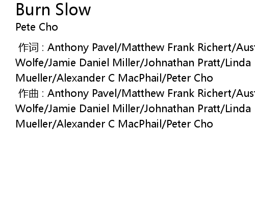 | [00:00.00-1] | 作曲 : Anthony Pavel/Matthew Frank Richert/Austin Nicole Wolfe/Jamie Daniel Miller/Johnathan Pratt/Linda Mia Leblon Noir/Robbie Mueller/Alexander C MacPhail/Peter Cho |
