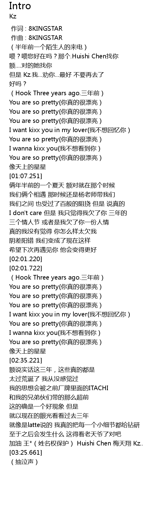 | [00:00.000] | 作词 : 8KINGSTAR |