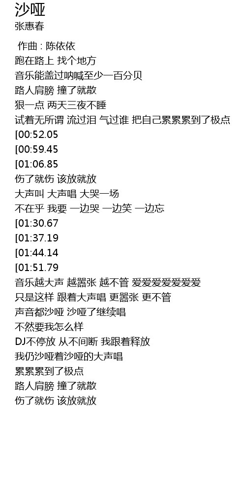 | [02:41.77] | wǒ réng shā yǎ zhe shā yǎ de dà shēng chàng |