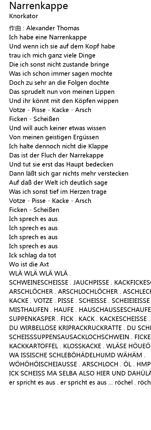 | KACKE . VOTZE . PISSE . SCHEISSE . SCHEIEIEISSE .SCHWEINEJAUCHE . | |