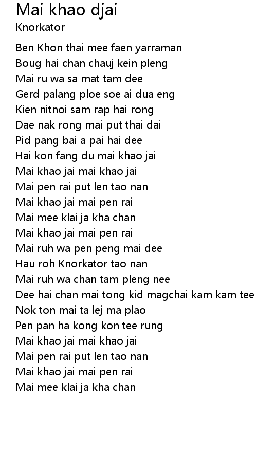 Dee hai chan mai tong kid magchai kam kam tee mai me smong