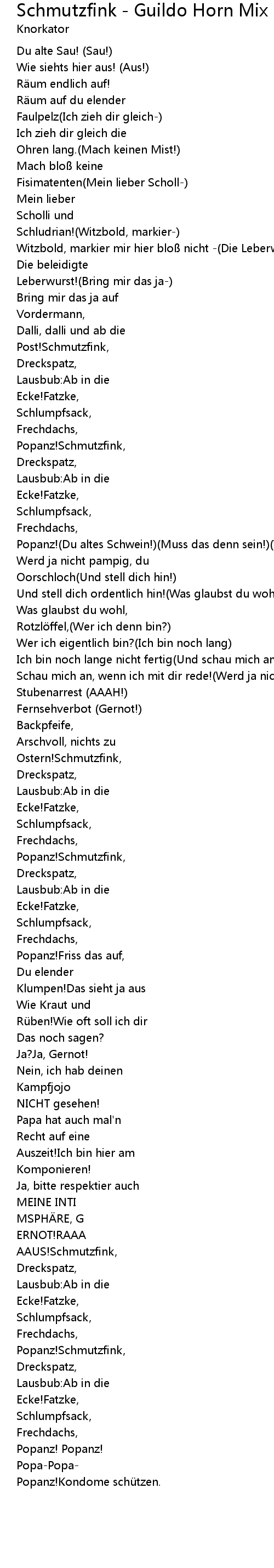 | Popanz!(Du altes Schwein!)(Muss das denn sein!)(Werd ja nicht pamp-) | |
