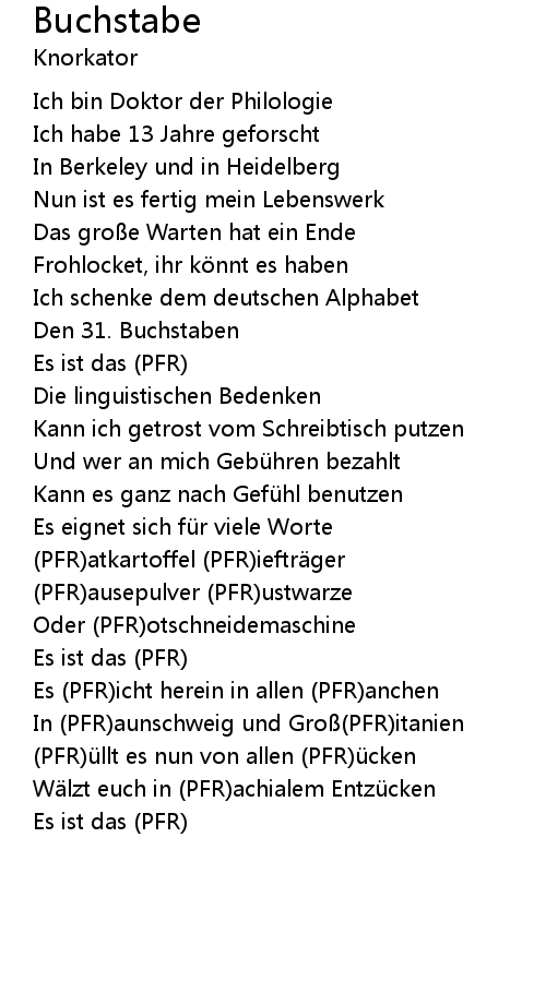 | PFRü llt es nun von allen PFRü cken | |