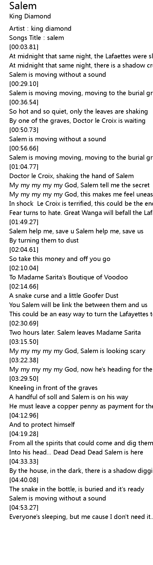 | [04:22.52] | Into his head... Dead Dead Dead Salem is here |