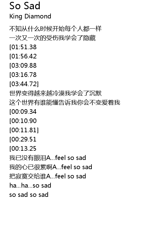 | [03:00.10][01:51.38][00:53.52] | gū dān de nǐ feel so sad so sad |