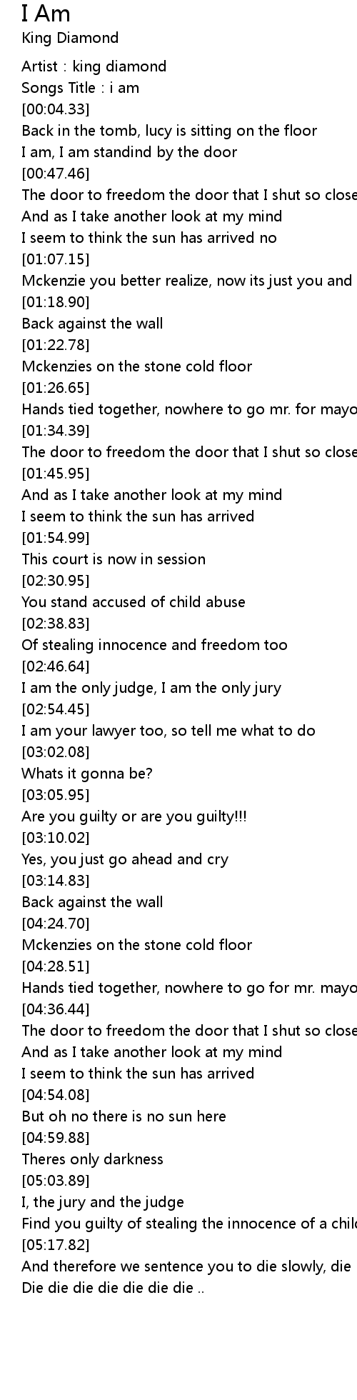 | [00:00.39] | Artist: king diamond |