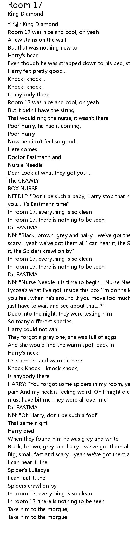 | HARRY: " You forgot some spiders in my room, yesterday Now I' ve got this stunning pain And my neck is feeling weird, Oh I might die Overnight some of your spiders must have bit me They were all over me" | |