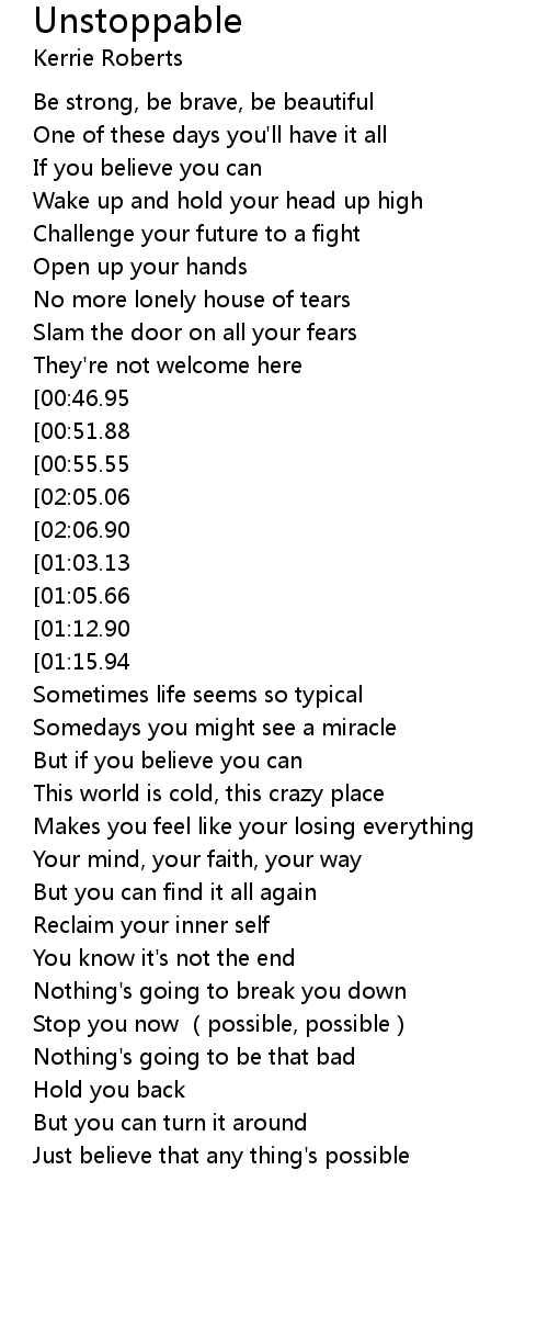 | [00:12.42] | Be strong, be brave, be beautiful |
