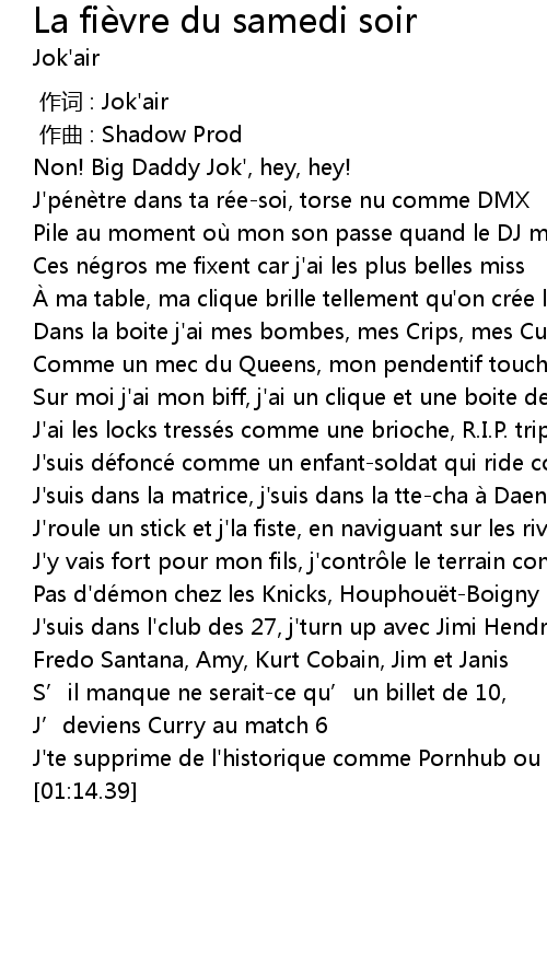 | [00:38.00] | J'ai les locks tressés comme une brioche, R.I.P. triple X |