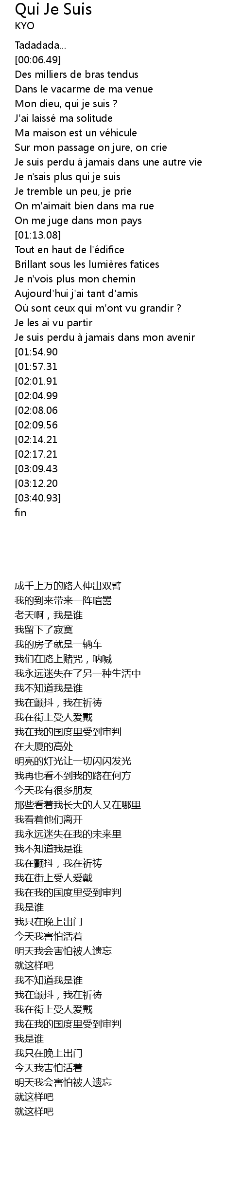 | [02:57.11][02:08.06] | Qui je suis ? |