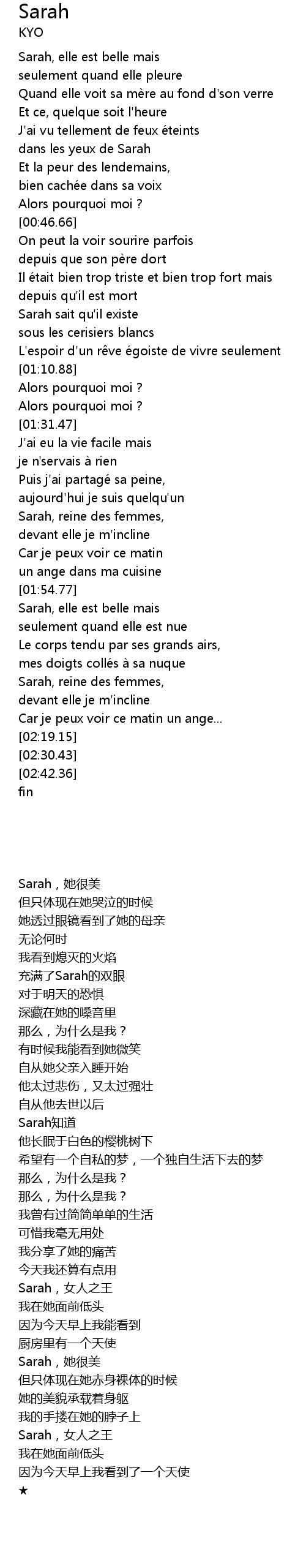 | [01:55.14] | Sarah, elle est belle mais |