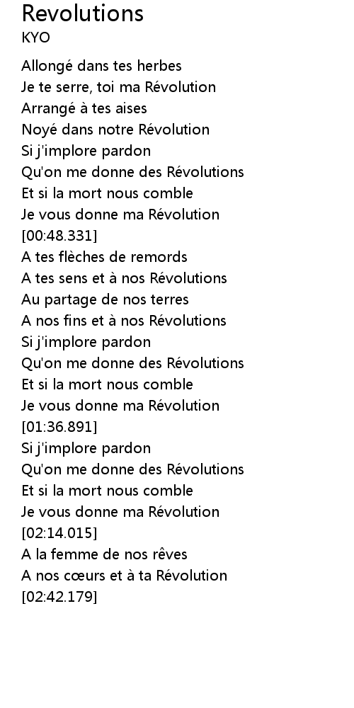 | [01:31.093] | Je vous donne ma Ré volution |