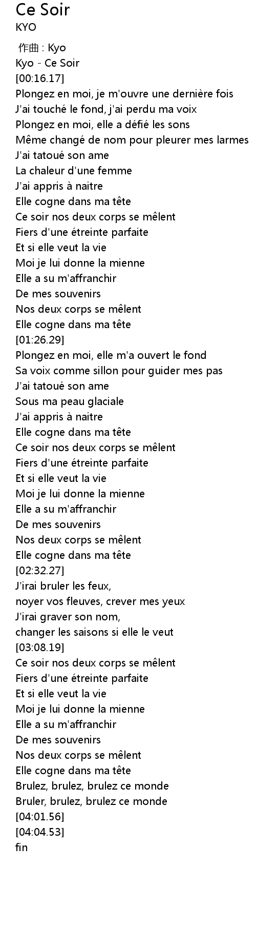 | [00:00.00] | Kyo Ce Soir |