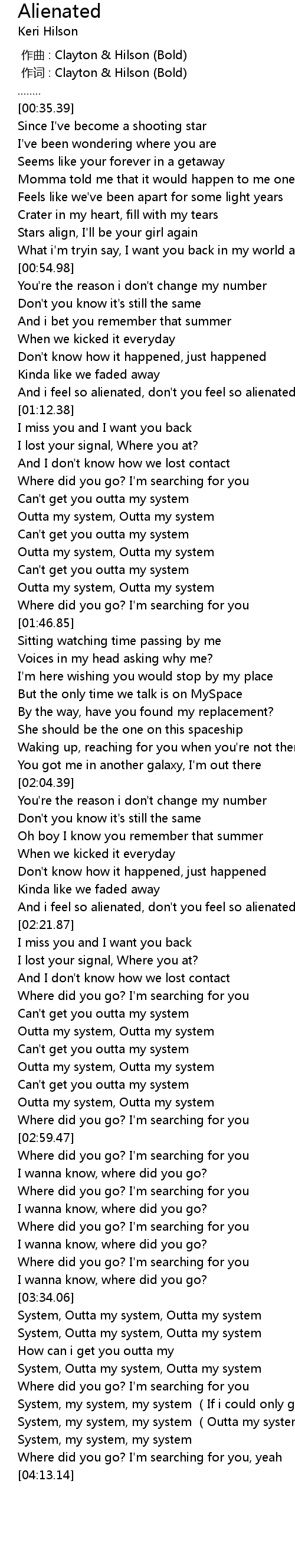 | [03:34.31] | System, Outta my system, Outta my system |