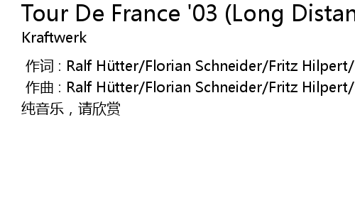 | [00:01.000] | 作曲 : Ralf Hütter/Florian Schneider/Fritz Hilpert/Maxime Schmitt |