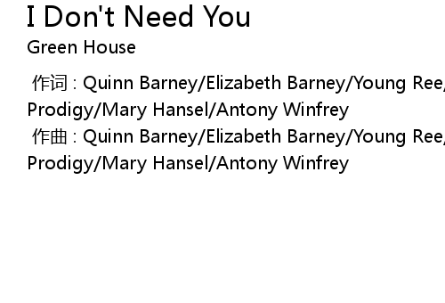 | [00:00.00-1] | zuo qu : Quinn Barney Elizabeth Barney Young Ree Nasair A 3 Tha Prodigy Mary Hansel Antony Winfrey |