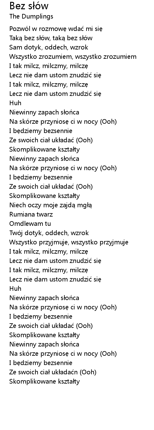 | [00:42.58] | I tak milcz, milczmy, milczę |