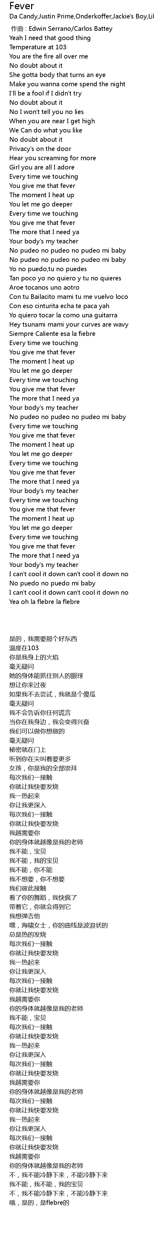| [03:09.51] | Yea oh la flebre la flebre |