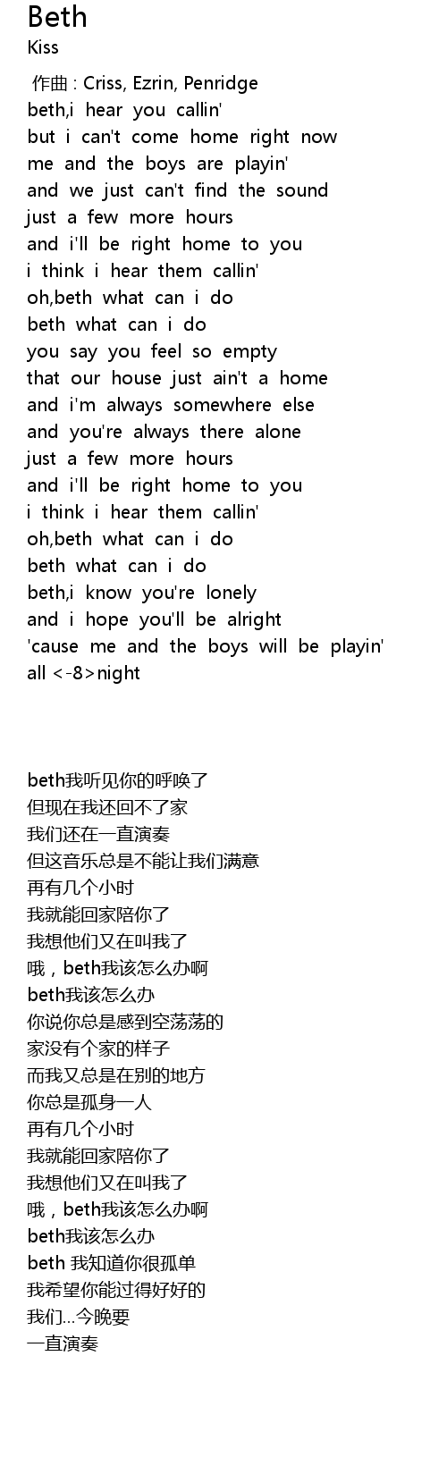 | Song | Beth |