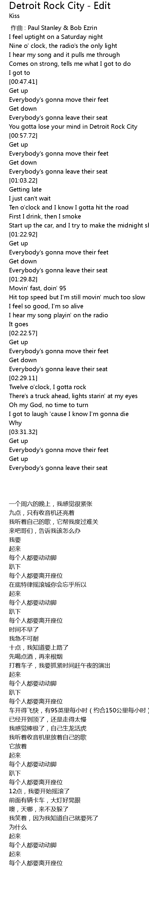 | [00:52.74] | You gotta lose your mind in Detroit Rock City |